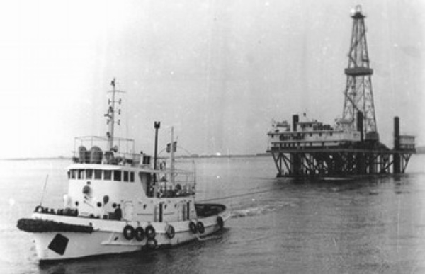1978年,“胜利1号”建造成功,下海后安全抵达渤海湾预定井位,不到一个月就打完了第一口实验井,拖船就位、压载坐底、钻井生产、起浮退场一次成功。顾心怿将心爱的钻井船取名为“胜利1号”,他拿出“胜利1号”钻井平台的照片向记者介绍,“那时的钻井船十分简陋。我直接把陆地上的钻井架和吊车搬到了船上,还在上面建造了简易的房子。”