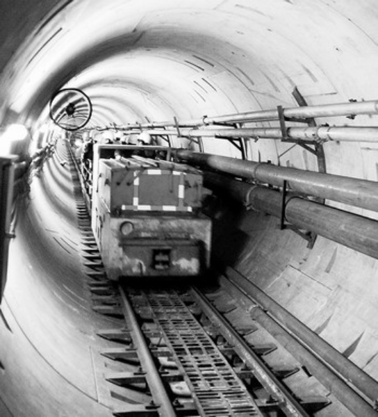 11月16日,工程施工人员在隧道内检查管线。 当日,在江西省九江市和湖北省武穴市之间穿越长江的西气东输二线长江盾构工程全线贯通,提前169天完成施工任务。 新华社记者 章 武摄