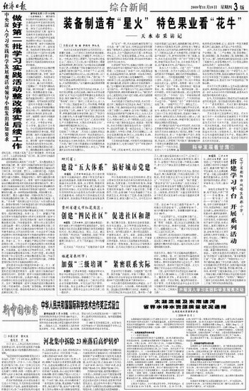 天水市经委主任徐国民介绍说,天水市有一批当年三线建设时内迁的企业,构成了全市的工业骨架。目前,装备制造业在全市规模以上工业占据了半壁江山。2008年,全市55户规模以上装备制造企业拥有资产总额76.2亿元,从业人员3万人,实现工业增加值18.8亿元,销售收入54.2亿元,利税6.68亿元。17户销售收入过亿元企业中有12户属于装备制造企业。根据这一实际情况,天水市把振兴装备制造业作为一项重要工作,通过改革创新,使一批老企业走上了振兴之路。据统计,今年前三季度,天水市规模以上工业企业实现增加值29.78亿元,同比增长11.8%,增速位居甘肃省14个市州第二位。