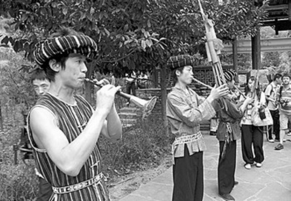 图1:在吉首市德夯苗寨,村民以苗族礼仪迎接游客。