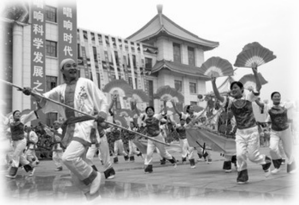 图二:农歌会期间,28支花鼓灯队在滁州市人民广场上进行了现场表演。
