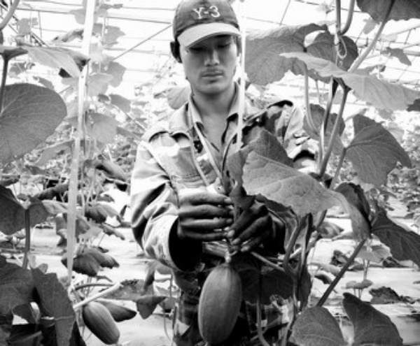 11月13日,海南省现代农业展示示范园区的一位果农正在对大棚里的甜瓜进行固定。 近年来,海南省加快推广大棚设施栽培、膜下滴灌、地膜覆盖等现代农业先进技术,大力发展冬季瓜果菜种植,有效促进了农业增效,农民增收。 本报记者 陈发卿摄