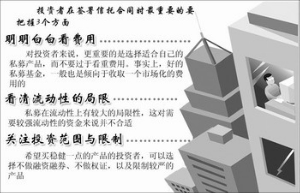 众所周知,私募证券投资基金与公募证券投资基金有着明显的区别,最典型的就是私募基金投资范围较广,投资限制较少以及20%的业绩报酬费的征取等。但值得投资者注意的是,私募内部不同产品之间还是有相当的差别,而这些在私募信托合同中都有比较明确的揭示。但由于信托合同往往长达好几十页,里面很多内容都是千篇一律,所以很多投资者没有兴趣将合同看完。