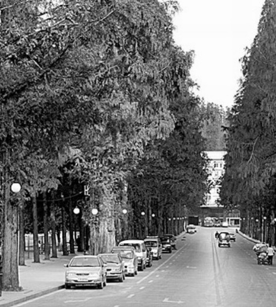 图四:井冈山景区茨坪镇中心街道,高大的杉树林见证着井冈山的发展与变迁。