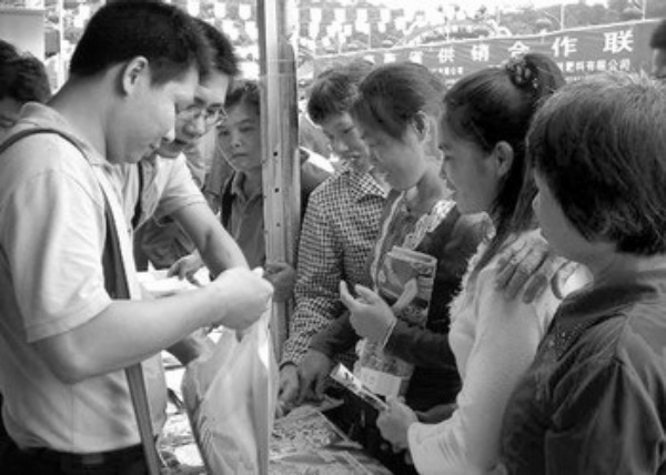 近年来,海南省琼中黎族苗族自治县通过举办农展会,把省内外的优质农资、现代农业新技术引进海南、引进海南中部地区农资生产经销商、科研推广单位与本省种养大户的对接,推动生产者与经营者进行广泛的交流与合作。同时,通过特色产品展销,促进产销两旺,促进农业增效和农民增收,加快海南中部市县现代农业发展步伐。图为农民在第二届海南(琼中)农展会上选购优