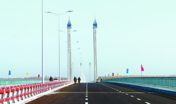 建成通车的松原大桥。 11月27日上午,位于吉林省松原市、第二松花江上目前最大、最长的松原大桥建成通车。松原大桥是吉林省“十一五”期间重点工程,全长4176米,投资7.4亿元。 新华社记者 齐海山摄
