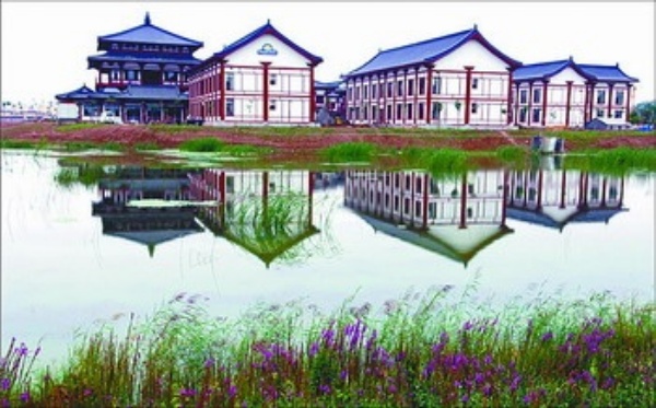 图3:正在建设中的灵州兴唐苑,总占地面积780亩,设计公园水域面积468亩,绿化面积226亩,将大大改善灵武市区的生态环境,以期更加完善灵武市的城市形象。