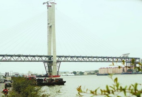 11月28日,目前国内跨度最大的公路轨道两用双层斜拉桥闵浦二桥在黄浦江上顺利合龙。 闵浦二桥是黄浦江上的第九座大桥,也是上海首座公路与轨道交通共用的双层独塔斜拉桥,总长4.15公里,主桥长436米,主跨251米。据悉,这一连接上海闵行区与奉贤区的跨江大通道,将于明年上海世博会前建成通车。 新华社发