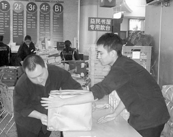 图片说明:11月20日,北京市“读书益民”工程首次农民自主选书活动在北京图书大厦举行。你瞧,从农民代表们选书、购书,到服务人员打包、运送,大家真是忙得不亦乐乎。