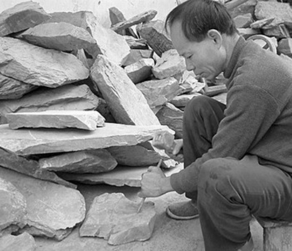 在有“端砚文化村”之称的白石村,马路边、基塘旁,铿锵的凿石之声此起彼伏、悦耳动听。百户人家,每走几步就能看见砚工埋头作业:案头摆石,左手握刀,右手握锤,叮叮当当地敲打着石头。不时可见“80后”、“90后”的小砚匠,带着耳机,哼着流行歌曲,摆弄着手中的砚石。和一千年前一样,制砚人在砚石的流光与粉尘里,碾过春夏秋冬。