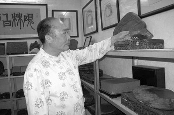 图8:在程文家里有两间陈列室,里面放满了他的端砚作品。 于 泳摄