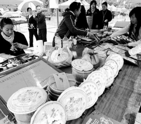 11月20日,顾客在购买普洱茶产品。近日,云南省普洱市举办为期5天的中国普洱茶节。节日期间,近150家茶叶、咖啡生产企业及民族特色产品经营商家参加普洱茶交易会和民族服装服饰及旅游产品展销活动,实现成交额近2000万元。 新华社记者 陈海宁摄