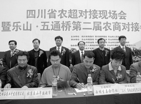 四川省“农超对接”试点从11月正式启动,商务部选定乐山三八连锁商场等13家连锁超市及20家专业合作社作为“农超对接”试点单位。而此前先于全省试点的乐山,已然探索出一条“农超对接”的“乐山模式”———