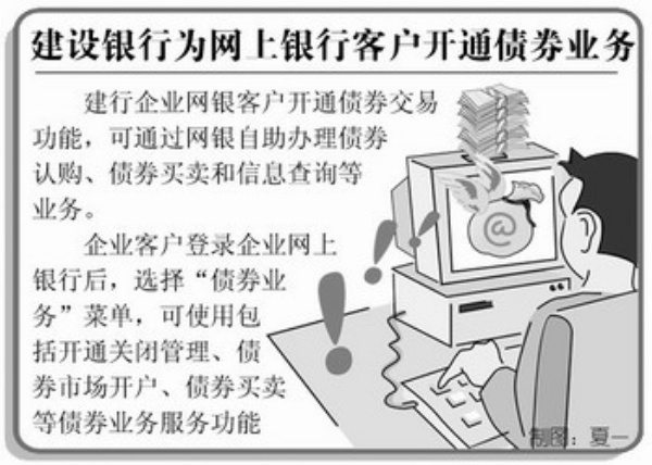 本报讯 日前,建行为帮助企业客户进一步提高资金运作效率,升级并优化了企业网上银行系统,为企业网银客户开通债券业务,丰富了企业客户网银投资理财服务。 (杨 燕)