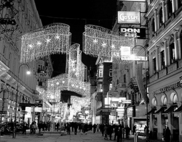 从11月末到明年1月中旬,总共230万盏灯饰被用来装点维也纳市的46条主要街道和广场。同时,为了节约能源,其中27条街道和广场的灯饰已经全部改装节能灯,能耗只有原来的七分之一。图为新近改造完成的维也纳市中心的克恩滕商业街被55万盏水晶灯饰装点得格外漂亮。 本报驻维也纳记者 王宝锟摄影报道