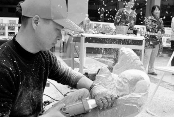 12月8日,来自宁德市的一位木雕高手在比赛现场展示绝活。 当日,为期6天的福建省首届工艺品雕刻(木雕)职业技能竞赛在莆田市开幕,来自福州、厦门、泉州、三明等地市的50位木雕高手参赛。本次竞赛以木质立体圆雕为主,分“人物造像类”、“动物花鸟类”两个类别,采用现场创作的形式,冠军选手将被授予“福建省技术能手”称号。 林剑冰摄 (新华