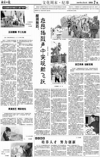 扎制一个狮头通常要经过扎、扑、写、饰四个步骤。