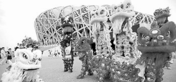 图4:文车醒狮团前往“鸟巢”参加排练。