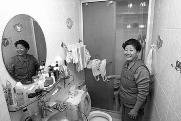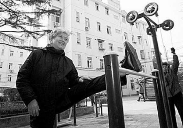 在上海最早的工人新村之一、建于20世纪50年代的闸北区彭浦新村的彭五小区,经过改造后,左图居民高爱珍一家拥有了自家独用的卫生间,右上图65岁的居民刘玲弟在综合改造中新建的社区健身角锻炼身体,右下图实施“拆落地”(将旧房拆除,在原址建新房)改造的新楼房即将完工。 新华社记者 刘 颖摄