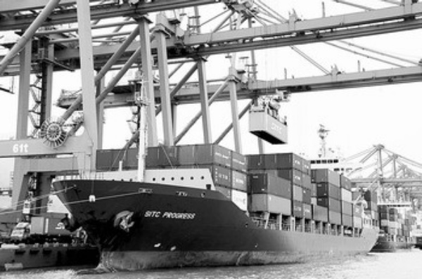 12月12日,几艘外轮在连云港港集装箱码头装载出口集装箱。今年以来,江苏连云港港外贸运量首次突破6000万吨。其中11月份外贸月吞吐量就完成536.9万吨,同比增长68.05%。 王 春摄(新华社发)