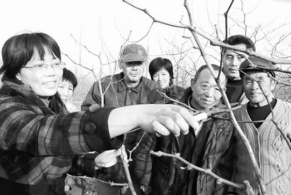 12月3日,山东省沾化县大高镇大学生村官姜丽丽在指导村民修剪冬枣树。 入冬农闲时节,山东省沾化县充分利用农村党员干部培训基地、农村远程教育网络和村科技学校,对农民开展文化知识教育和实用技术培训,并送技术到田间地头,为农民“充电”。目前,全县已开办各类农村技术培训班120期,受教育3万余人次。 李向中摄