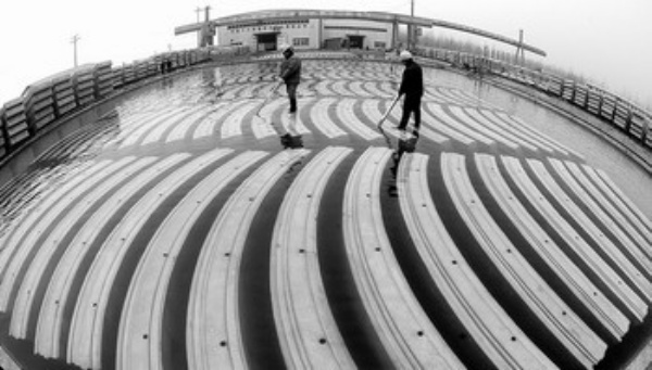 12月15日,施工人员在加工南水北调中线穿黄工程隧道所用的管片。目前,由中铁隧道集团负责施工的南水北调中线穿黄工程Ⅱ—A标段施工进展顺利,即将成功贯穿黄河。 高山岳摄(新华社发)