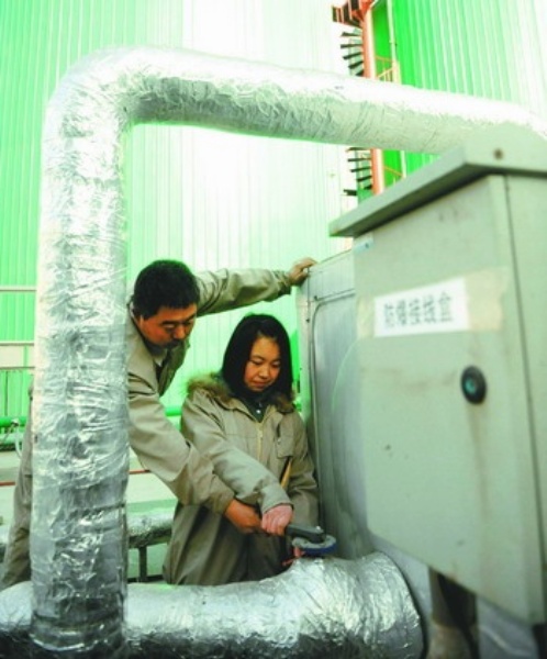 12月16日,北京市大兴区长子营镇留民营村沼气站,工作人员对设备进行维护。当天,留民营沼气七村联供工程正式开通,该工程可为当地7个村的1650户村民提供清洁、安全的管道燃气。 本报记者 赵 晶摄