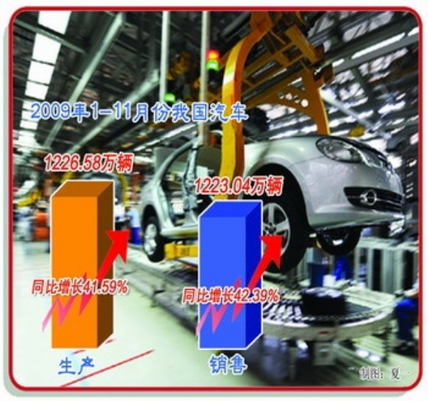在国际金融危机的影响下,全球汽车业表现低迷,中国汽车工业在2008年下半年也出现了产销下滑的情况。对中国汽车产业来说,2009年是关键的一年————保持发展还是艰难调整,全球汽车业遭遇的寒冬是否会将“寒意”传递给中国汽车市场?出人意料的是,从2009年1月起,我国汽车业每个月的产销数据都是“再创新高”。2009年,中国汽车工业以产销首超1000万辆的成绩,交出了令人满意的答卷。