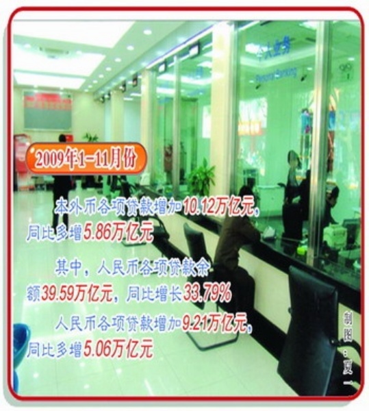 保增长,信贷投放充足为经济发展提供了有力的资金支持。一年来,我国银行体系流动性充裕,货币信贷快速增长,金融体系平稳运行。据人民银行数据,今年1—11月本外币各项贷款增加10.12万亿元,同比多增5.86万亿元;其中,人民币各项贷款余额39.59万亿元,同比增长33.79%;人民币各项贷款增加9.21万亿元,同比多增5.06万亿元。新增贷款无论是规模和增速都创下历史最高记录,为应对国际金融危机的冲击,实现保增长提供了有力的支持。在保持充足信贷投放的同时,金融机构注意把握信贷投放的节奏和连续性。今年上半年,我国银行业金融机构新增本外币贷款7.72万亿元,同比增幅为32.8%。