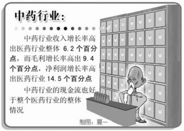 值得一提的是,中银国际对中药行业的分析发现,从三季度业绩看,中药行业收入增长率高出医药行业整体6.2个百分点,而毛利增长率高出9.4个百分点,净利润增长率高出医药行业14.5个百分点,中药行业的现金流也好于整个医药行业的整体情况。他们认为,医改背景下,中药行业受到政府的大力支持,同时基本药物制度等政策有利于中医药行业市场份额的提升。