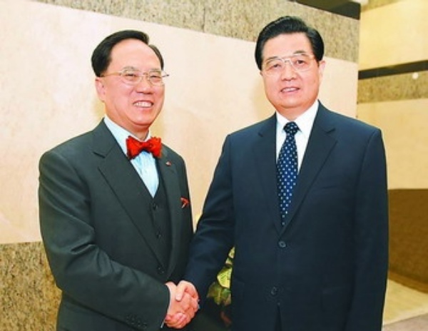 胡锦涛指出,今年以来,在行政长官曾荫权领导下,香港特别行政区政府和社会各界群策群力,积极应对国际金融危机冲击,保持了香港繁荣稳定。中央政府对香港特别行政区行政长官和特区政府所做的大量工作和取得的成绩是充分肯定的。