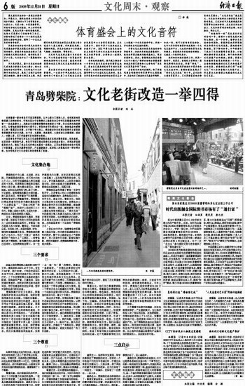 这是青岛市市南区对历史文化老街劈柴院改造后呈现的繁荣景象。而改造前,这里还是一派衰败气象。青岛市市南区通过坚持以社会效益为重心,采用政府直接投资的方式,避免了商业化运作难以克服的一些弱点,从而在劈柴院的改造中实现了百姓满意、历史风貌得到保护、产业重新振兴、政府投入回报稳定的一举四得目标,也为传统历史文化老街区的改造积累了经验。
