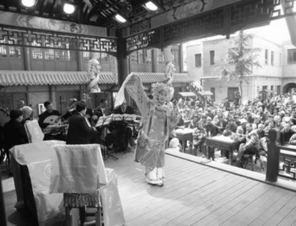 走进整修一新的青岛市市南区劈柴院,从中山路大门洞进入后,首先闻到的是特别诱人的烤肉香味,听到的是江宁会馆舞台上悠扬的音乐和市民们惬意的欢声笑语————在这座舞台上,戏剧曲艺各路精英精彩的表演连日不断,来自各界的戏迷票友们,尽情地表演着精彩的文娱节目。青岛的老市民围坐在一起,细细地品味着舞台上那一幕幕历史活剧。江宁路十字大街上,那些修旧如旧的酒店饭馆外立面依然保留着原有的历史风貌,坛子肉、豆腐脑、鸡丝馄饨、火烧拉面以及糖球摊、捏面人、吹糖人等,无不洋溢着怀旧的亲情与甜美。