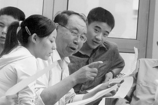 图1:恩施土家族苗族自治州民俗专家谭宗派教外地学生演唱《龙船调》。