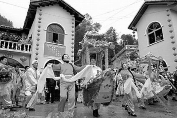 利川所在鄂西并没有划龙船的风俗习惯,怎么会传唱“龙船调”呢?记者道出了自己的疑惑。“抗战时期,当时的省府西迁恩施,江汉平原最有代表性的民间文艺形式————‘采莲船’也随之在鄂西流传。由于山里本来就无莲可采,为图吉利,‘采莲船’在当地老百姓口中传成了‘彩龙船’。”周峥嵘介绍说。