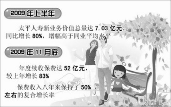 数据同时显示,业务结构的改善带来了新业务价值的提高:2009年上半年,太平人寿新业务价值总量达7.03亿元,同比增长80%,增幅高于同业平均水平;到11月底,年度续收保费达52亿元,较上年增长83%,个险13月继续率达84.5%,个险25月继续率达92.0%,银保13月继续率达91.6%,银保25月继续率达96.8%,续期指标平稳升高,成为与个险、银保齐头并进的业务线。