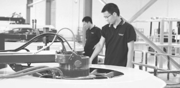 上图:晋江邓禄普太古飞机轮胎有限公司员工在维修飞机轮胎。