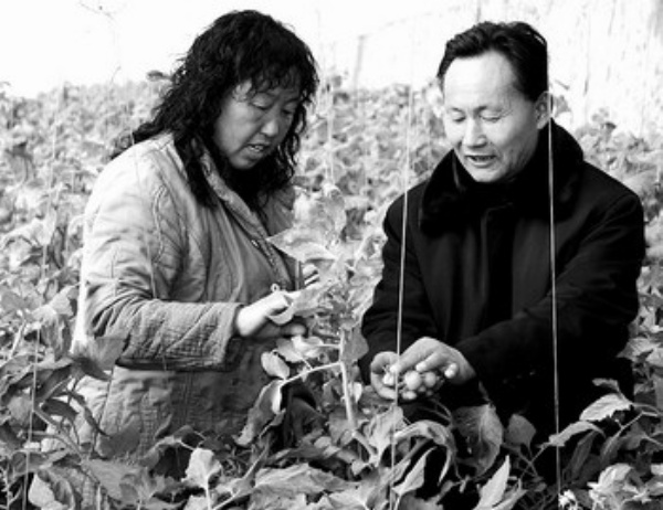 下图:呼和浩特市赛罕区金河镇跟堡村近日迎来了一批农业技术专家。图为村民(左)正在向专家请教冬季西红柿种植知识。