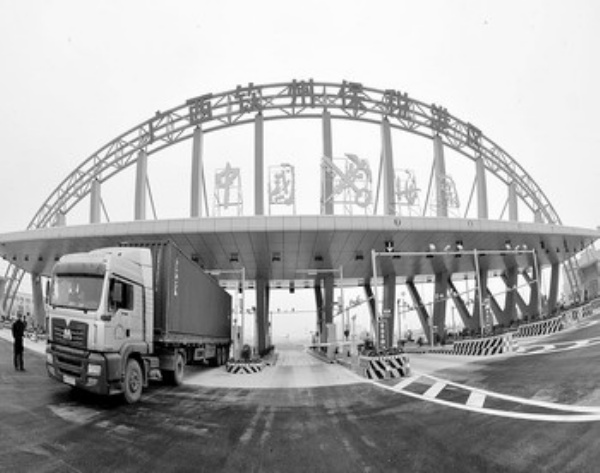 12月23日,车辆在通过广西钦州保税港区主卡口区。当日,广西钦州保税港区(一期)通过国家联合验收组的正式验收,并将于2010年年初正式封关运作。 新华社记者 周 华摄
