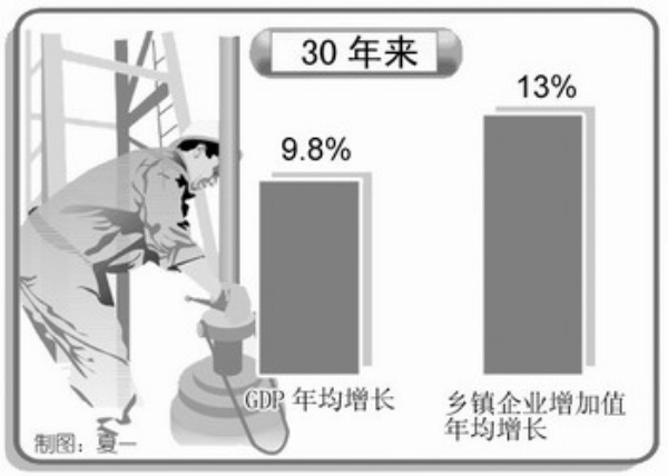 高鸿宾:乡镇企业作为我国国民经济的重要支柱,在增强我国综合国力方面具有不可替代的作用。2008年全国乡镇企业增加值84127亿元,占国内生产总值的27.98%;出口商品交货值35092亿元;实缴国家税金8765亿元。2008年乡镇工业增加值达58805亿元,占全国工业增加值的45.5%,而在1978年这一比重只有9.95%。2008年乡镇企业增加值占农村社会增加值的71.21%,成为支撑农村经济最坚实的支柱。
