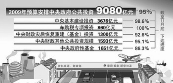财政部副部长张少春今天表示,今年预算安排中央政府公共投资9080亿元,截至11月底已下达预算的95%。从实际执行结果测算,今年中央政府公共投资总额可能超过年初预算。