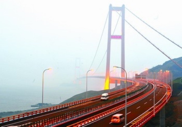 1999年9月动工建设的舟山跨海大桥全长46.5公里,总投资131.13亿元,以其规模浩大、水文地质条件复杂、风环境恶劣等特点堪称是对我国桥梁建设技术水平和能力的新挑战,整个工程共由五座跨海大桥组成,起于舟山本岛,途经里钓、富翅、册子、金塘四岛,跨越多个水道和灰鳖洋,至宁波镇海登陆。