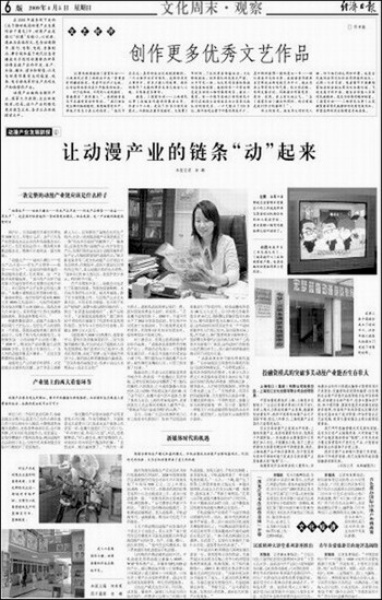 《观察》瞄准了一个有着勃勃生机的朝阳产业:自2006年《关于推动我国动漫产业发展的若干意见》出台以来,动漫行业发展很快,各地动漫产业发展计划的制定更是如火如荼,纷纷打造自己的“动漫之都”。中投顾问发布的《2009—2012年中国动漫产业投资分析及前景预测报告》显示,全国的动漫企业达到了8000余家,5000多家企业从事动漫创作及动漫相关产品的研发、设计、生产和销售,还有几千家企业有动漫相关业务。报告还指出,鉴于中国儿童食品、玩具、儿童服装、儿童音像制品和各类儿童出版物每年的销售额巨大,在某种程度上,这些行业今后的发展与行销都与动漫这一新兴产业的带动作用相关,以此类推,中国动漫产业将拥有超千亿元产值的巨大发展空间。