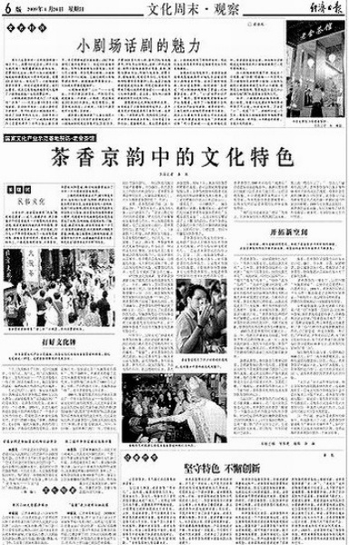 记者姜范这段细腻的文字把读者带进了4月26日《观察》版一篇采写北京老舍茶馆的文章,体会了传统文化与城市文明建设和经济发展的密切关联。城市作为一种文化现象,在人类文明史上具有独特的重要地位。回顾城市发展的历史,文化始终是城市最主要的功能之一,文化建设是现代化城市不可忽略的重要组成部分,是农村小城镇建设过程中往往被着力强调的一项工作。比如湖北随州,切实抓住本地出土曾侯乙编钟的优势,打好编钟文化牌,让编钟这张城市名片在经济社会又好又快发展的进程中越擦越亮。记者魏劲松的文章介绍了随州擦亮“编钟古乐之乡”文化名片的目的,是要尽快让随州文化品牌响亮起来,城市面貌亮丽起来,景区设施完备起来,旅游规模壮大起来,相关产业带动起来。《观察》一年中先后刊出《茶香京韵中的文化特色》、《随州:编钟悠扬声韵里 城市名片响又亮》、《“文化绿洲”植根希望的田野》、《深圳大芬村:找准市场定位 绘出发展宏图》、《青岛劈柴院 文化老街改造一举四得》等报道,正是希望把各地一些成功范例拿来与读者共享。