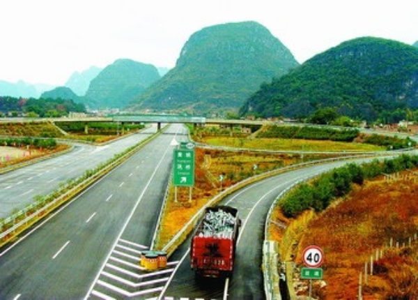 12月27日,一辆工程车行驶在桂梧高速公路钟山至马江段黄姚互通上。 桂梧高速公路全长346公里(含贺州支线30公里),12月29日建成通车后,桂林至梧州全线只需3小时车程。 黄旭胡摄(新华社发)