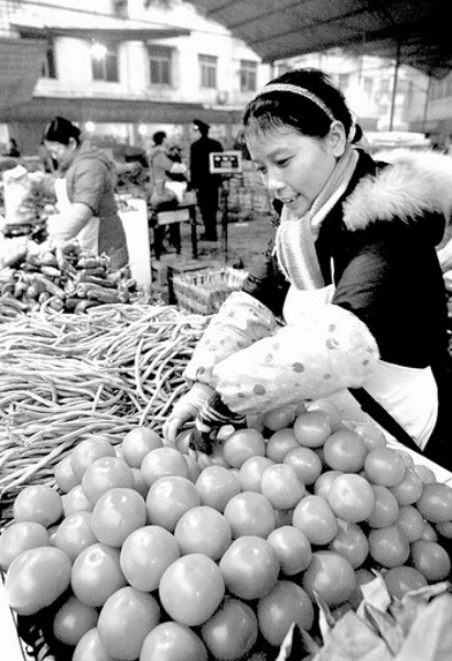 12月24日,四川华蓥市农贸市场一菜贩在整理即将出售的新鲜蔬菜。华蓥市重视蔬菜供应渠道管理,外地蔬菜源源不断进入该市,加上本地蔬菜种植面积扩大,保证了年关蔬菜供应。 邱海鹰摄(中经网供图)