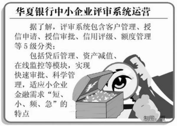 | 本报讯 华夏银行中小企业信贷评审系统日前成功上线并正式运营。