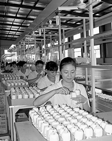 万年县返乡青年经培训在江西索普电子有限公司上岗就业。 徐声高摄