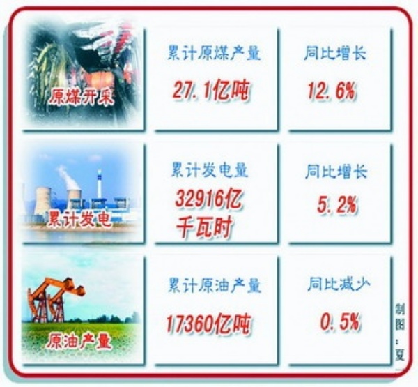 2008年下半年以来,受国际金融危机影响,世界能源价格波动较大,同时工业生产对能源需求减少,我国能源行业也遭遇到巨大的困难。对此,我国出台了《石化产业调整和振兴规划》等多项行业发展规划的指导意见,能源行业企业按照保增长、扩内需、调结构的总体要求,积极加大固定资产投资,努力推动重大能源工程项目建设,尽力满足民生用能需求,重点开展行业节能降耗、加快发展新能源和可再生能源,着力提高创新能力和管理水平,取得明显成效。今年前11个月,我国原煤累计产量27.1亿吨,同比增长12.6%;累计发电量32916亿千瓦时,同比增长5.2%;累计原油产量17360亿吨,同比减少0.5%。