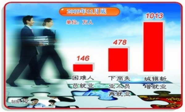 2009年,面对严峻的就业形势,国务院制定出台了就业方面的一个综合性文件和3个专门文件,国务院就业工作部际联席会议有关部门也及时出台减轻企业负担等3个文件。各地政府也多措并举,通过实施推动经济增长的一揽子计划来拉动就业,在安排政府投资和重大项目时同步制定扩大就业的目标计划,较好地实现了就业增长与经济增长的良性互动。各地认真落实政策,切实减轻部分困难企业的负担,发挥了稳定就业岗位的作用。到10月底,全国共帮助困难企业减轻负担338.5亿元,受益企业162万户、职工6100万人。